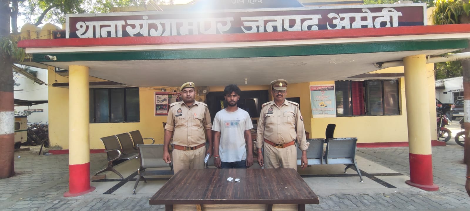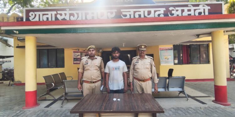 दिनांक 13.04.2026 को क्षेत्राधिकारी अमेठी श्री मनोज कुमार मिश्र के कुशल नेतृत्व में थाना संग्रामपुर पुलिस द्वारा मुखबिर की सूचना पर अभियुक्त को गिरफ्तार किया गया। गिरफ्तार अभियुक्त का नाम आशीष मिश्रा पुत्र स्व० लल्लन मिश्रा है, निवासी चौबे का पुरवा, मौजा बेलखरी, थाना संग्रामपुर, जनपद अमेठी, उम्र लगभग 26 वर्ष है।