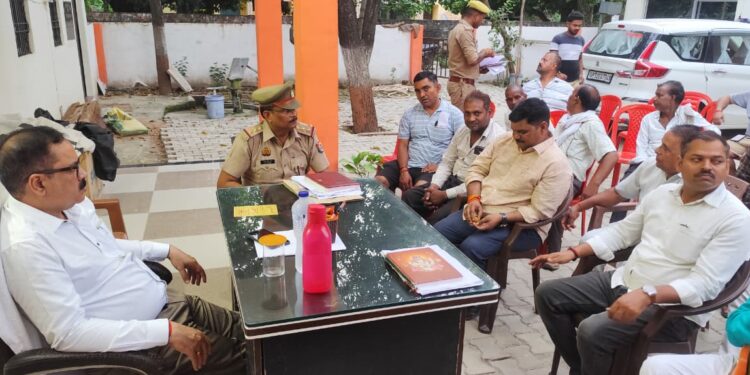 अमेठी,संवाददाता : दुर्गा पूजा महोत्सव को लेकर रविवार को चौकी परिसर में हुई महत्वपूर्ण बैठक में सुरक्षा व्यवस्था को लेकर अहम निर्णय लिए गए। एडिशनल एसपी शैलेंद्र सिंह, सीओ मनोज मिश्रा, एडीएम आशीष सिंह और थानाध्यक्ष कृष्ण मोहन सिंह की अध्यक्षता में हुई इस बैठक में दुर्गा पूजा समितियों के आयोजक व गणमान्य नागरिक उपस्थित रहे।