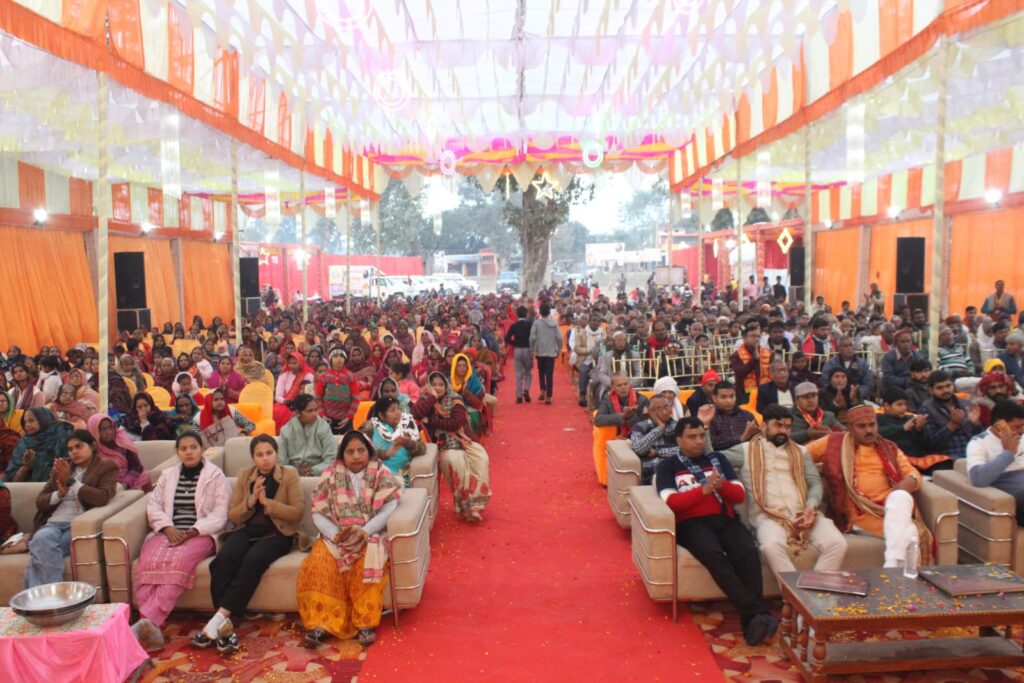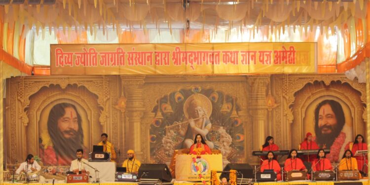 अमेठी,संवाददाता : दिव्य ज्योति जाग्रति संस्थान के तत्वावधान में आश्रम, पूरे गणेश लाल, ग्राम-भरेथा, हथकला चौराहा, प्रयागराज रोड, अमेठी में 07 जनवरी से 13 जनवरी 2026 तक आयोजित श्रीमद्भागवत कथा ज्ञान यज्ञ के पंचम दिवस पर श्रीआशुतोष महाराज जी की शिष्या, भागवताचार्या महामनस्विनी साध्वी सुहस्ता भारती जी ने गोवर्धन पूजा प्रसंग का भावपूर्ण वर्णन किया।