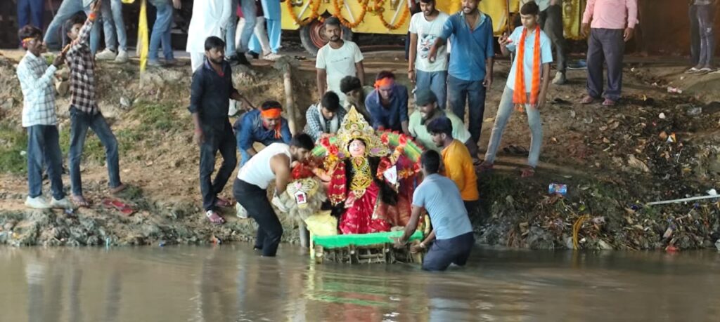 विधिविधान से क्षेत्र के 31 स्थलों की दुर्गा प्रतिमाओं का विसर्जन, मां के जयकारों से गूंजा वातावरण