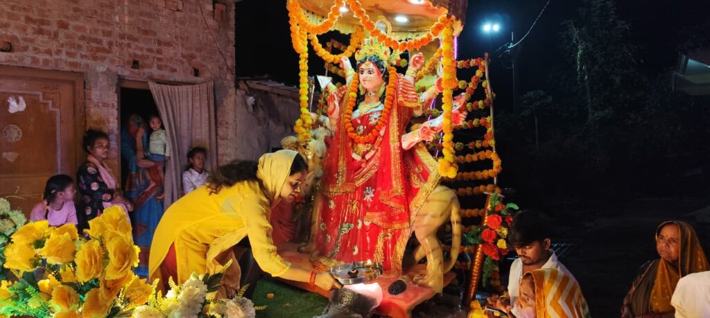 जय मां दुर्गा के जयकारे से गुंजायमान वातावरण के बीच मां के कान में अपनी मनोकामना पूर्ण करने का संदेश देती महिलाओं का समूह पंडालों को नया रंग दे रहा था। मां के माइके आने और सिंदूर खेला के साथ सुहागन होने की कामना के साथ विदाई का मनोरम दृश्य बंगाली समाज की संस्कृति के बारे में बता रहा था। मोनू जायसवाल,सतीश,अजय सेठ,अंकित,जयशंकर, हरिश्चंद्र सत्यम,आलोक,बिक्की,आदि मौजूद रहे।