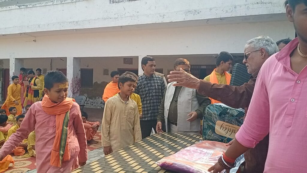 अमेठी,संवाददाता : “सेवा परमो धर्मः, नर सेवा नारायण सेवा” की भावना को साकार करते हुए स्वामी परमहंस महाराज टीकरमाफी, अमेठी में अध्ययनरत वेद–वेदांग एवं सनातन धर्म की शिक्षा ग्रहण करने वाले 150 छात्रों को गद्दे, कंबल और ऊनी बेडशीट वितरित किए गए।