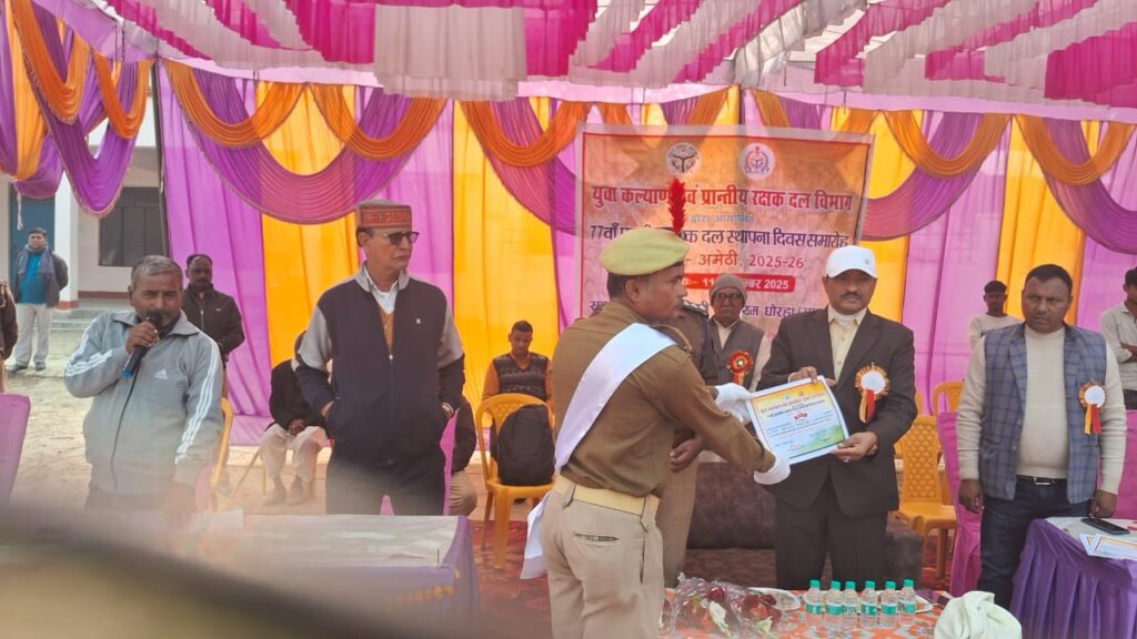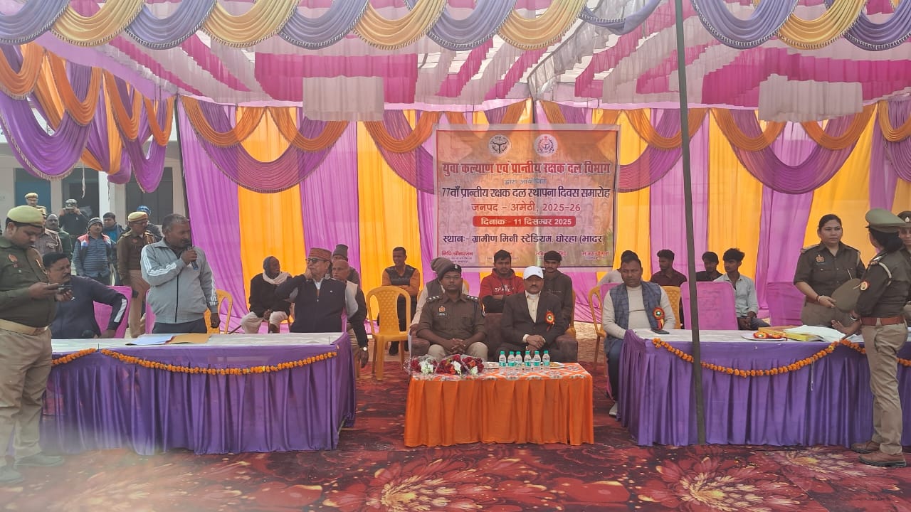 अमेठी,संवाददाता : उत्तर प्रदेश प्रांतीय रक्षक दल (पीआरडी) का 77वां स्थापना दिवस समारोह गुरुवार को मिनी स्टेडियम घोरहा में बड़े धूमधाम से आयोजित किया गया। दो दिवसीय कार्यक्रम में जिला पंचायत अध्यक्ष राजेश अग्रहरि मुख्य अतिथि के रूप में शामिल हुए। उन्होंने भव्य परेड का निरीक्षण किया तथा खेल प्रतियोगिताओं में प्रथम, द्वितीय और तृतीय स्थान प्राप्त करने वाले जवानों व कम्पनी कमांडरों को पुरस्कार वितरित किए।