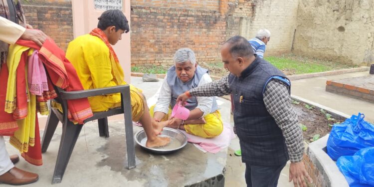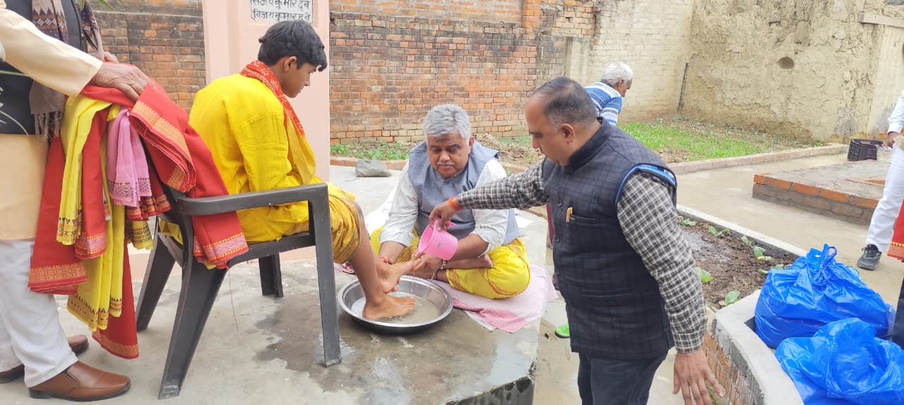 समाजसेवी ने गुरुकुल के बटुक छात्रों (शिष्यों) को भोज के उपरांत भेट किए अंगवस्त्र
