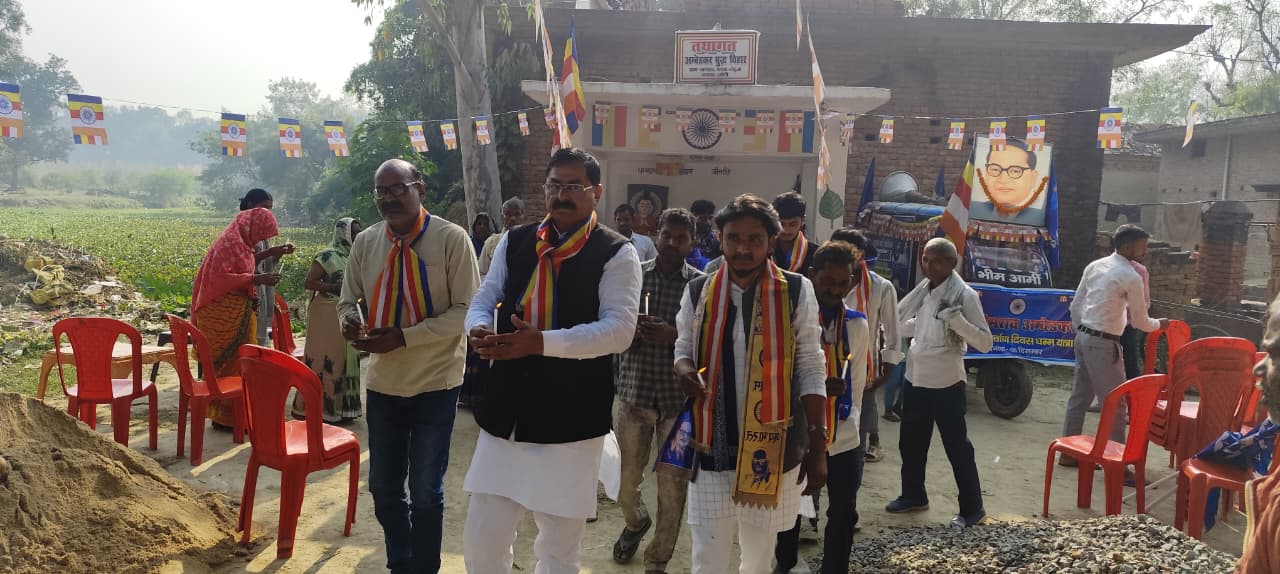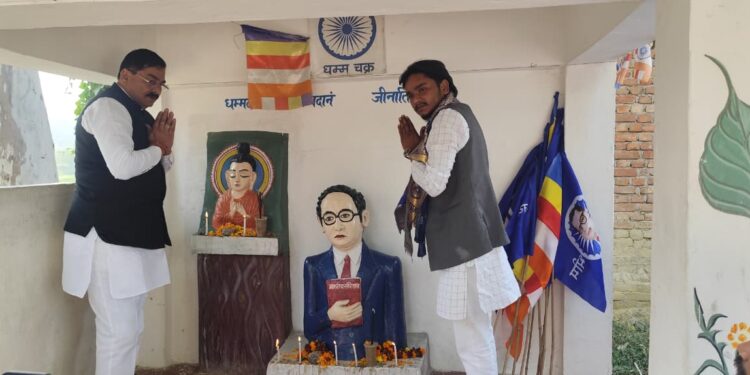 अमेठी, संवाददाता : निर्माता बोधिसत्व बाबा साहेब डॉ. भीमराव अंबेडकर के महापरिनिर्वाण दिवस पर जनपद में विभिन्न स्थानों पर उनकी प्रतिमाओं पर पुष्पांजलि अर्पित की गई और भावभीनी श्रद्धांजलि दी गई। भेंटुआ ब्लॉक के खंडहर गांव स्थित तथागत अंबेडकर बुद्ध विहार में बौद्ध अनुयायियों द्वारा सामूहिक त्रिसरण–पंचशील कार्यक्रम आयोजित किया गया, जिसके बाद शांति धाम यात्रा निकाली गई।