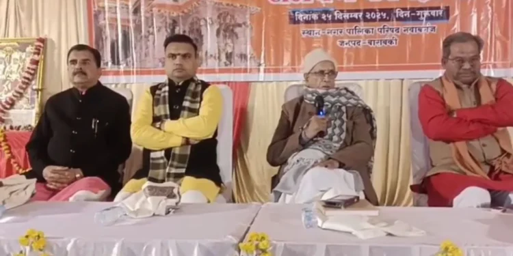 बाराबंकी, संवाददाता : विश्व हिंदू परिषद द्वारा बाराबंकी के अवध प्रांत में धर्म रक्षा निधि पूजन कार्यक्रम का आयोजन किया गया। नगर पालिका परिषद सभागार में आयोजित कार्यक्रम में मुख्य वक्ता के रूप में उपस्थित केंद्रीय उपाध्यक्ष विश्व हिंदू परिषद एवं महासचिव राम जन्मभूमि तीर्थ क्षेत्र न्यास चंपत राय ने संगठन की कार्यप्रणाली और राम मंदिर निर्माण से जुड़े तथ्यों पर विस्तार से प्रकाश डाला।