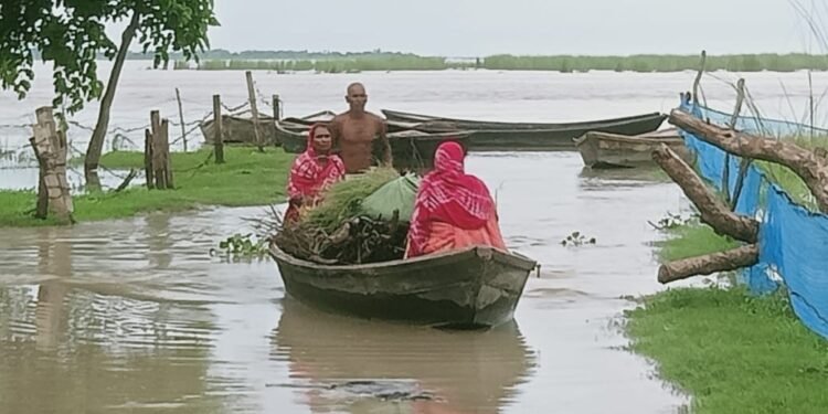 रामनगर (बाराबंकी),संवाददाता : नेपाल से छोड़े गए अतिरिक्त पानी के कारण सरयू नदी का जलस्तर लगातार बढ़ने के बाद अब स्थिर हो गया है, लेकिन स्थिति अभी भी गंभीर बनी हुई है। नदी का जलस्तर खतरे के निशान से 43 सेंटीमीटर ऊपर दर्ज किया गया है, जिससे तटीय इलाकों में बाढ़ का खतरा मंडरा रहा है। सरयू की तेज धाराएं अब तलहटी के गांवों की ओर रुख कर रही हैं, जिससे तपेसिपाह, कोरिनपुरवा, दुर्गापुर, सिसौंडा, लहड़रा, परसादीपुरवा और जैनपुरवा जैसे कई गांवों के निवासियों की चिंताएं गहराने लगी हैं। मरकामऊ मार्ग पर कई खेत जलमग्न हो चुके हैं और ग्रामीण पशुओं के चारे के लिए नाव का सहारा ले रहे हैं।