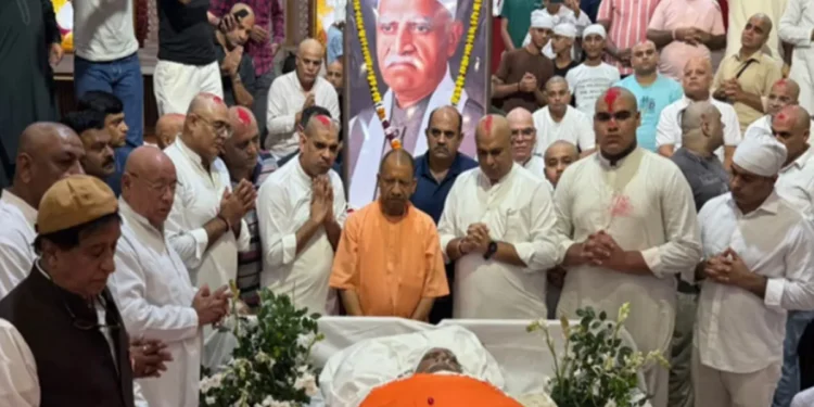 लखनऊ,संवाददाता : मुख्यमंत्री योगी आदित्यनाथ गुरुवार को लखनऊ स्थित शिव शांति आश्रम पहुंचे और आश्रम के पीठाधीश्वर संत शिरोमणि साईं चांडूराम जी के अंतिम दर्शन कर उन्हें श्रद्धांजलि अर्पित की। मुख्यमंत्री ने पार्थिव शरीर पर पुष्पांजलि अर्पित की और उपस्थित शोकाकुल श्रद्धालुओं के प्रति अपनी गहरी संवेदनाएं प्रकट कीं। मुख्यमंत्री योगी ने संत शिरोमणि के पार्थिव शरीर पर केसरिया अंगवस्त्र ओढ़ाया और उनकी प्रतिमा पर पुष्पांजलि अर्पित कर नमन किया।