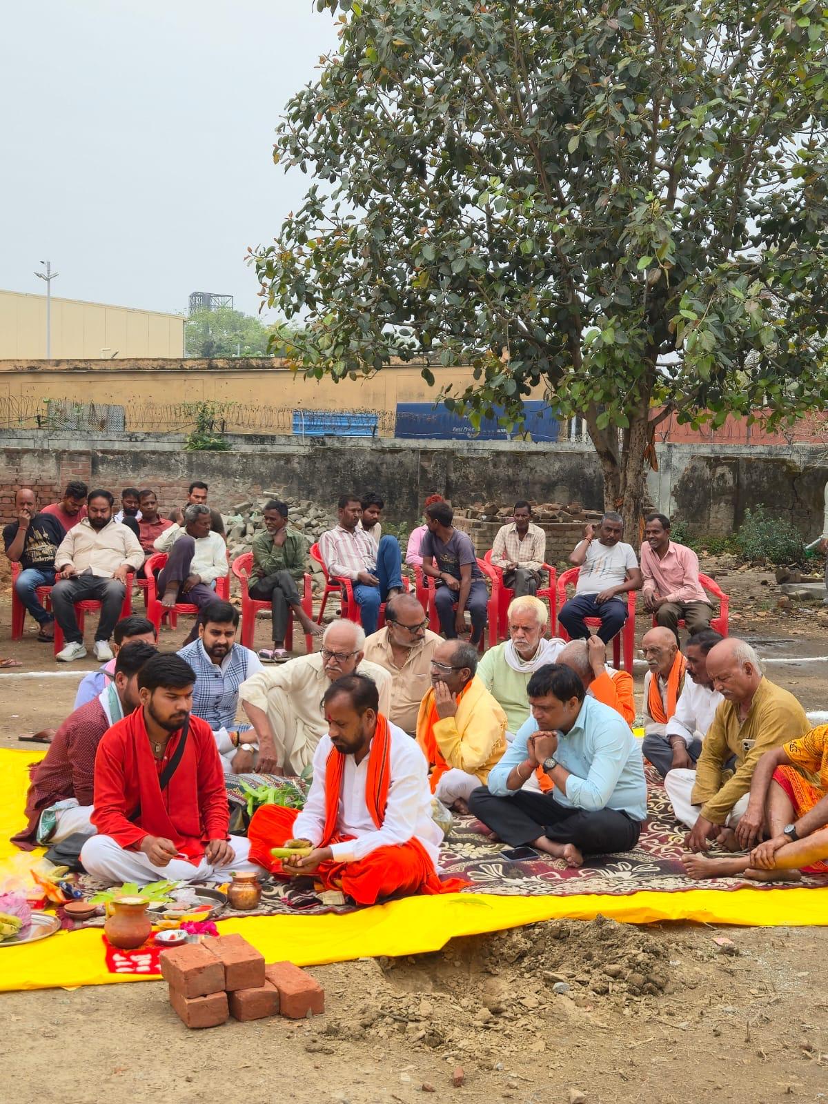 ग्राम अहिमामऊ के निवासियों ने नींव पूजन कर लिया निर्माण कार्य का संकल्प