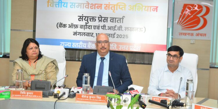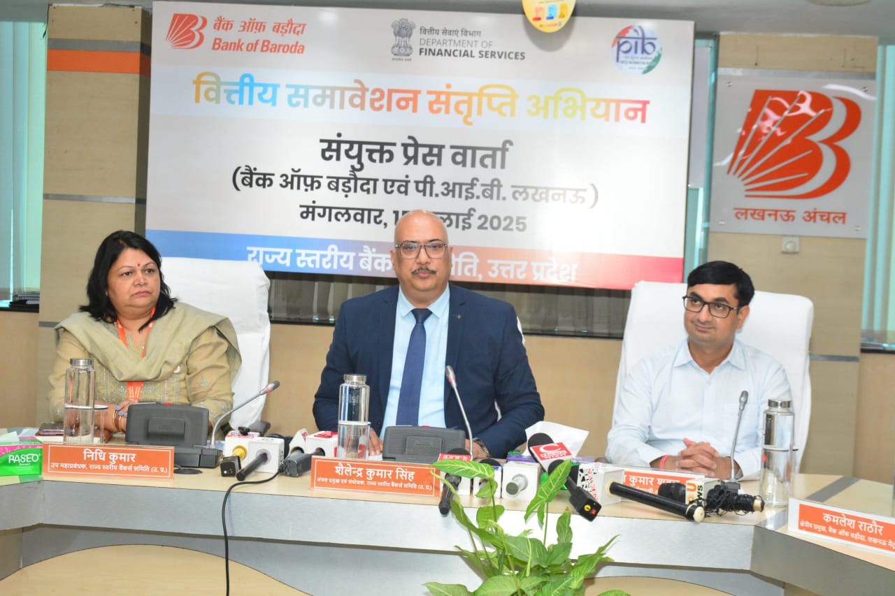 लखनऊ,संवाददाता : देशभर में एक जुलाई से शुरू हुए वित्तीय समावेशन संतृप्ति अभियान 2025 के तहत उत्तर प्रदेश की 57,702 ग्राम पंचायतों में बैंकों और सरकार के विभिन्न विभागों द्वारा व्यापक जन-जागरूकता कार्यक्रम चलाए जा रहे हैं। यह अभियान 30 सितंबर 2025 तक चलेगा, जिसका मुख्य उद्देश्य ग्रामीण और वंचित समुदायों को सुरक्षित, समावेशी और जागरूक बैंकिंग सेवाओं से जोड़ना है। लखनऊ में आयोजित संयुक्त प्रेसवार्ता में राज्य स्तरीय बैंकर्स समिति (SLBC) के संयोजक और बैंक ऑफ बड़ौदा के अंचल प्रमुख श्री शैलेन्द्र कुमार सिंह ने बताया कि यह अभियान सिर्फ बैंकिंग सुविधाएं देने तक सीमित नहीं, बल्कि वित्तीय सशक्तिकरण, डिजिटल सुरक्षा, और योजनाओं की जानकारी देकर समाज के हर वर्ग को आत्मनिर्भर बनाने की दिशा में एक बड़ा कदम है।