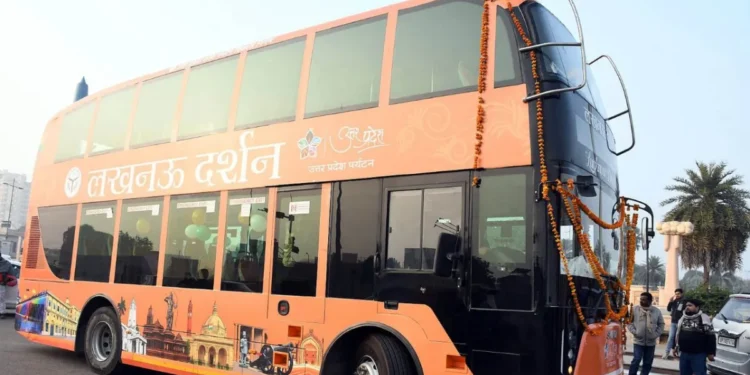 डबल डेकर इलेक्ट्रिक बस से शुरू हुआ लखनऊ दर्शन