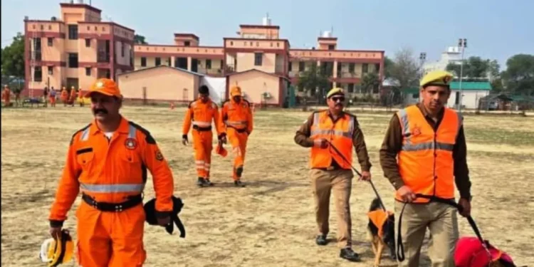 लखनऊ,संवाददाता : भूकंप जैसी आपदा से निपटने की तैयारियों को परखने के उद्देश्य से चतुर्थ वाहिनी सशस्त्र सीमा बल (SSB) कैंप पर शुक्रवार को एनडीआरएफ की 11वीं बटालियन द्वारा मॉक ड्रिल का आयोजन किया गया। अभ्यास के दौरान तहसील मोहनलालगंज क्षेत्र में भूकंप आने से कई इमारतों के ढहने और आग लगने की परिकल्पना की गई।