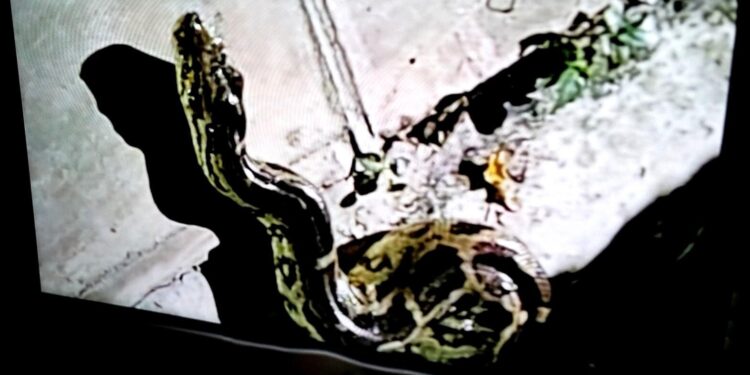 लखनऊ संवाददाता : राजधानी लखनऊ की पॉश बटलर पैलेस कॉलोनी स्थित झील के चारों तरफ बने वॉकिंग-ट्रैक पर पिछले दिनों एक बड़ा अजगर देखा गया। इसे लेकर स्थानीय लोगों और सुबह-शाम टहलने वाले लोगों में दहशत है। झील के किनारे ही बच्चों के खेलने का पार्क भी बना है। अभिभावकों में अजगर को लेकर एक डर का माहौल बना हुआ है।